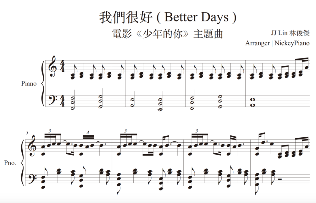 JJ Lin 林俊傑|我們很好 (Better Days) ► Sheet Music