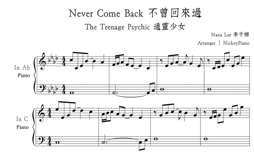 雙調性設計:貼心提供 A-flat Major 與 C Major 兩種調性版本。